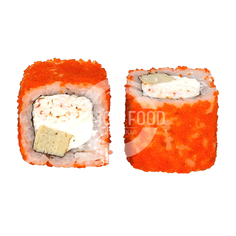 Рис, нори, сыр творожный, снежный краб (имитация), томаго, икра масаго (Соевый соус 40г, Имбирь20, Васаби 10г)