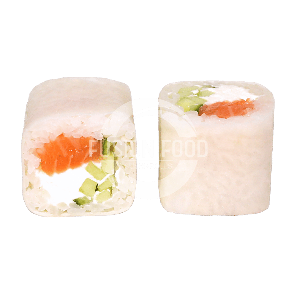 Рис, японское тесто, сыр творожный, лосось охлажденный, огурец (Соевый соус 40г, Имбирь20, Васаби 10г)