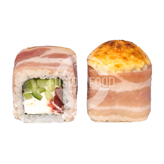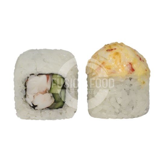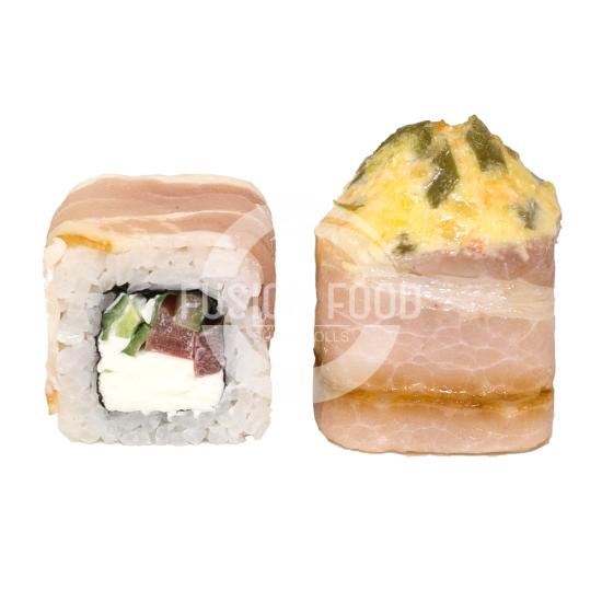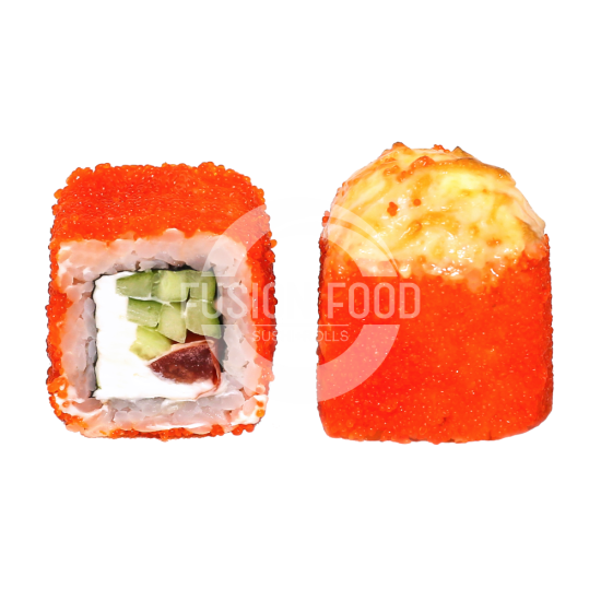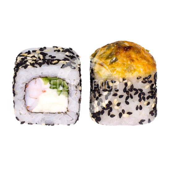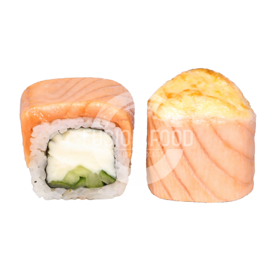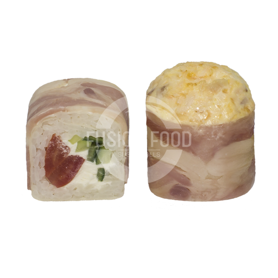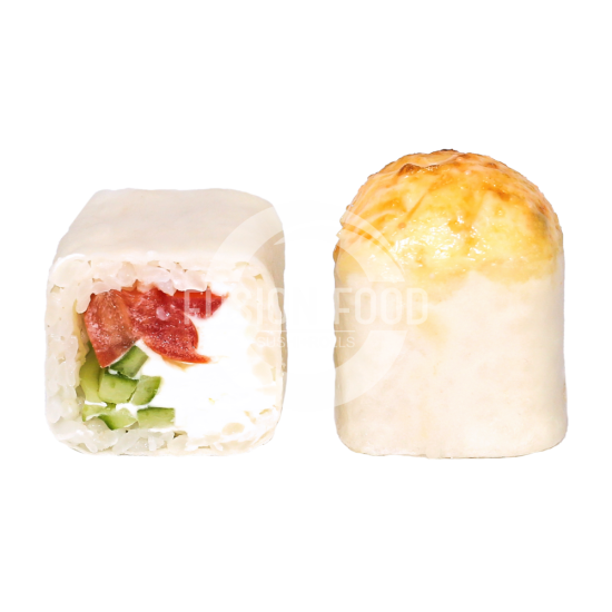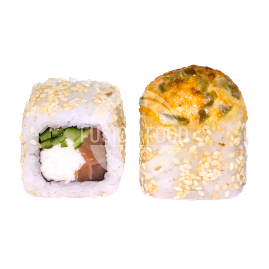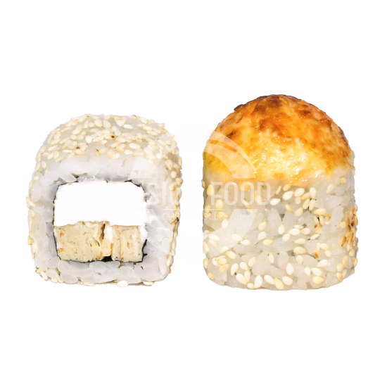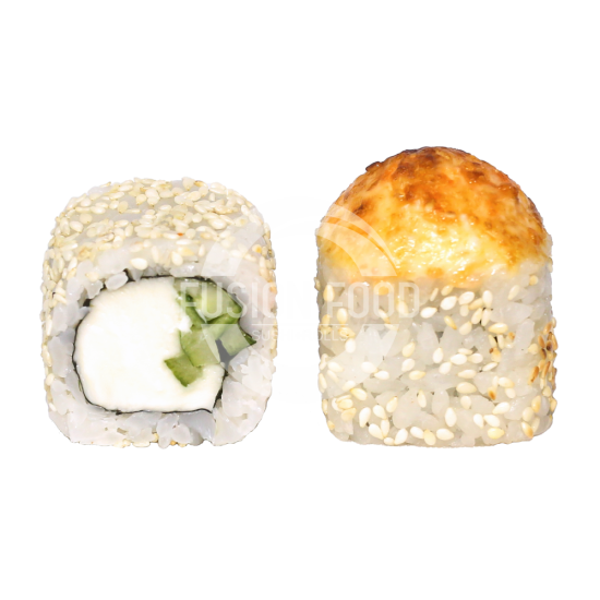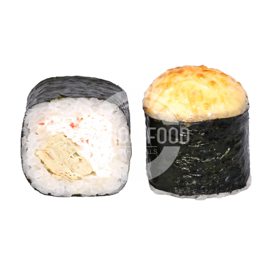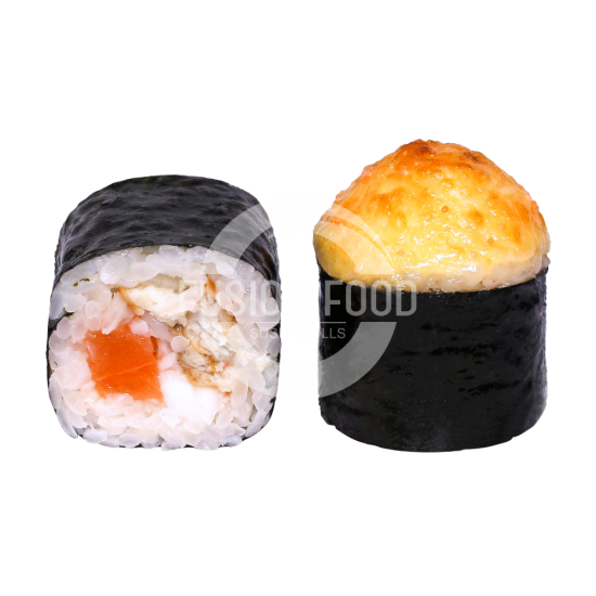 Рис, Нори, Моцарелла, Огурец, Микс Кунжут, Грудка Копченая, Соус Гриль, Соус Унаги (Соевый соус 40г, Имбирь20, Васаби 10г)