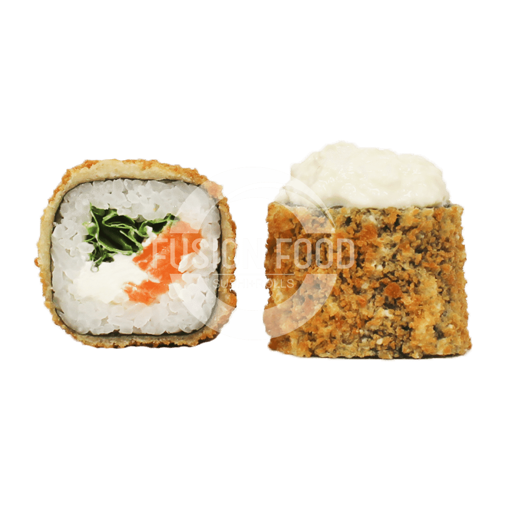 Рис, Нори, Сыр Сливочный, Лосось Охлажденный, Огурец, Кляр, Сухари Панировочные, Страчателла (Соевый соус 40г, Имбирь20, Васаби 10г)