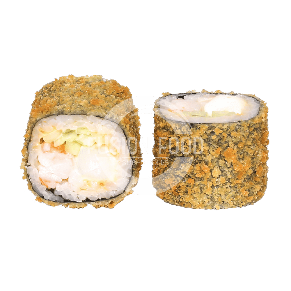 Рис, Нори, Моцарелла, Креветка Тигровая, Соус Спайси, Огурец, Кляр, Сухари Панировочные, Соус Унаги (Соевый соус 40г, Имбирь20, Васаби 10г)