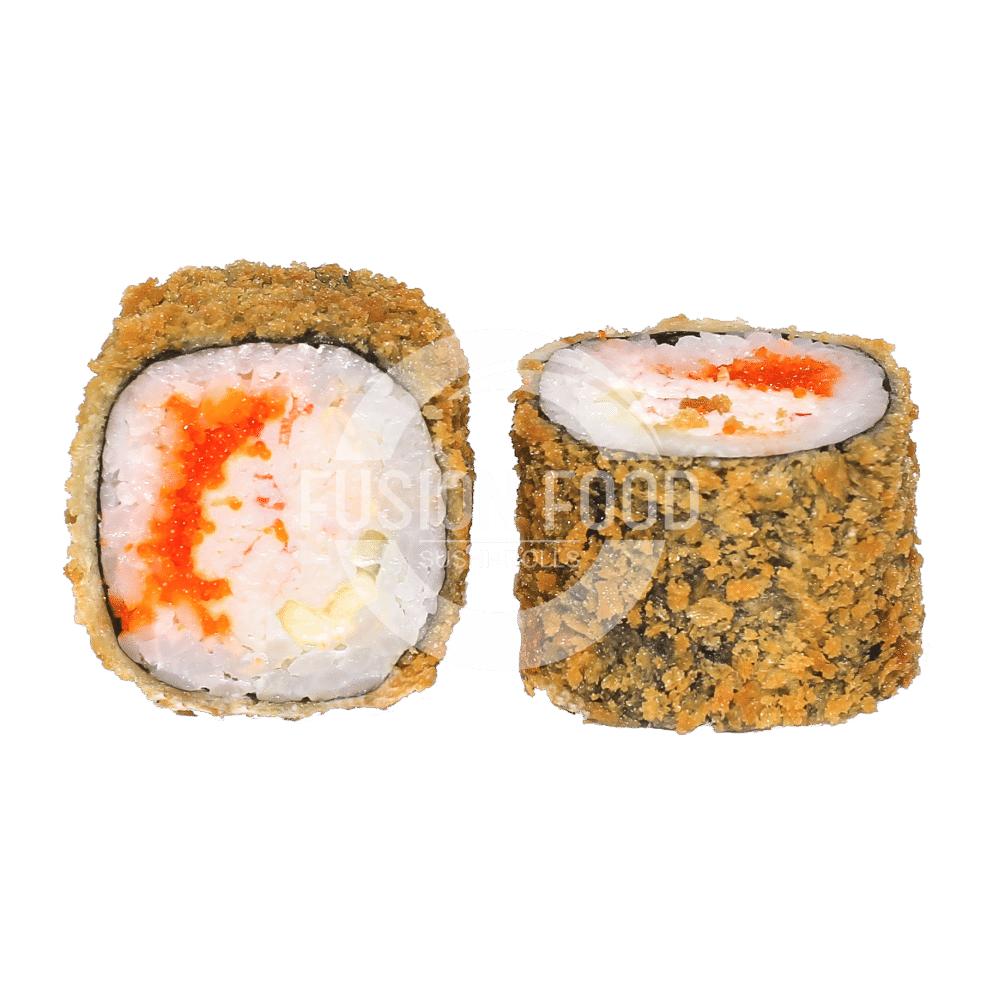 Рис, Нори, Снежный Краб (Имитация), Огурец, Икра Масаго, Кляр, Сухари Панировочные, Соус Унаги (Соевый соус 40г, Имбирь20, Васаби 10г)