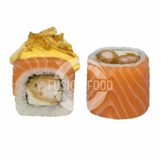 Японское Тесто, Рис, Креветка Темпура, Моцарелла, Соус Манго, Картофельный Кранч.